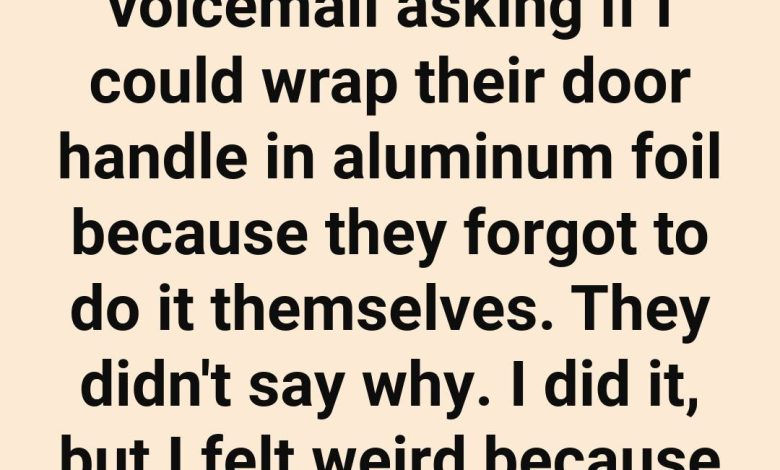 When my neighbors left for their yearly vacation, they left me a short and rather puzzling voicemail. It was a request I had never encountered before and left me scratching my head. The message simply said: “Hey, could you wrap our door handle in aluminum foil? We forgot before leaving.” No explanation, no instructions—just a simple request for… foil. I went over to do it, wanting to be a helpful neighbor, but I’ll admit I felt a little strange the whole time. I kept wondering: why would anyone need to wrap a doorknob in shiny aluminum? It felt like a…