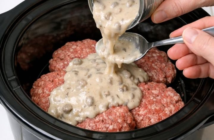 This Poor Man’s Steak is classic comfort in a bowl, turning humble ground beef into a savory, melt-in-your-mouth meal. Slow-braising the patties in mushroom soup and onion mix creates a rich, umami-packed gravy that naturally tenderizes the meat. Think of it as an easy Salisbury steak—perfect for nights when you crave a hearty “meat and potatoes” dinner with almost no prep. Poor Man’s Steak Ingredients IngredientAmountGround beef (80/85% lean)1 ½ lbsCondensed cream of mushroom soup1 (10 ½ oz) canDry onion soup mix1 (1 oz) packetWater½ cupBlack pepper¼ tsp Instructions 1️⃣ Prep & Season – Lightly grease a 4–6 qt slow…