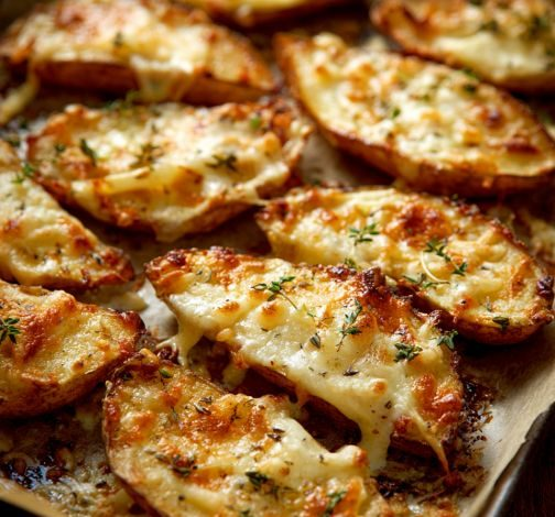 These Oven-Baked Cheesy Potato Wedges are perfectly seasoned, baked until crispy, and finished with a gooey blend of cheddar and mozzarella. They make a delicious side or a satisfying snack. Oven-Baked Cheesy Potato Wedges Ingredients IngredientAmountLarge russet potatoes4Olive oil2 tbspGarlic powder1 tspOnion powder1 tspPaprika1 tspSalt & pepperTo tasteShredded cheddar cheese1 cupShredded mozzarella cheese½ cupFresh thyme leaves1 tbsp Instructions 1️⃣ Preheat & Prep – Preheat oven to 400°F (200°C) and line a baking sheet with parchment paper. 2️⃣ Prepare Potatoes – Wash and scrub potatoes, then cut each into 8 wedges. 3️⃣ Season Wedges – In a large bowl, toss wedges…