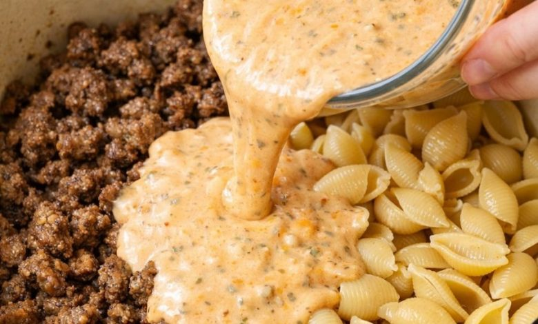 This Creamy One-Pot Beef and Shells recipe takes the familiar “hamburger helper” style meal to the next level. By cooking the dry pasta right in a mixture of beef broth, heavy cream, and tomato paste, the shells release their starch as they simmer, naturally thickening the liquid into a rich, silky sauce. The result is a hearty, comforting dinner made entirely in one Dutch oven—from browning the beef to melting the cheese—so cleanup stays simple. Creamy One-Pot Beef and Shells Ingredients IngredientAmountGround beef (80–90% lean)1 1/2 lbsUncooked medium pasta shells12 ozBeef broth2 cupsHeavy cream1 1/2 cupsShredded sharp cheddar (divided)1 1/2…