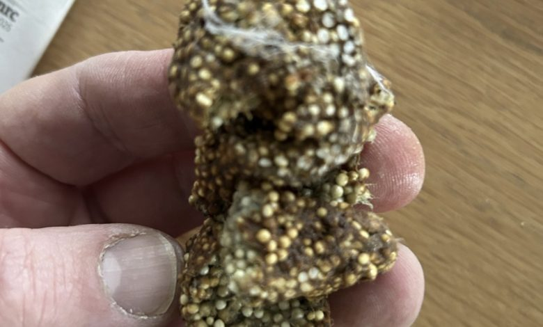 “Found this sticky gunk under a shelf inside my house. What is this?”
