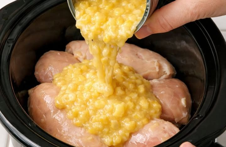 This Amish Chicken Corn Noodle recipe is pure “farmhouse comfort” in a bowl. Think of it as a creamy cross between a hearty stew and a deconstructed pot pie. Using cream-style corn as the base adds natural sweetness and a silky texture—no roux or heavy cream needed. Wide egg noodles soak up the savory chicken broth and corn juices, becoming tender and flavorful with every bite. Ingredients IngredientAmountBoneless, skinless chicken breasts2 lbsCream-style corn2 (14 3/4 oz) cansChicken broth2 cupsWide egg noodles (dry)8 ozSalt1 tspBlack pepper1/2 tsp Instructions Step 1: Layer the IngredientsPlace the raw chicken breasts in a single layer…