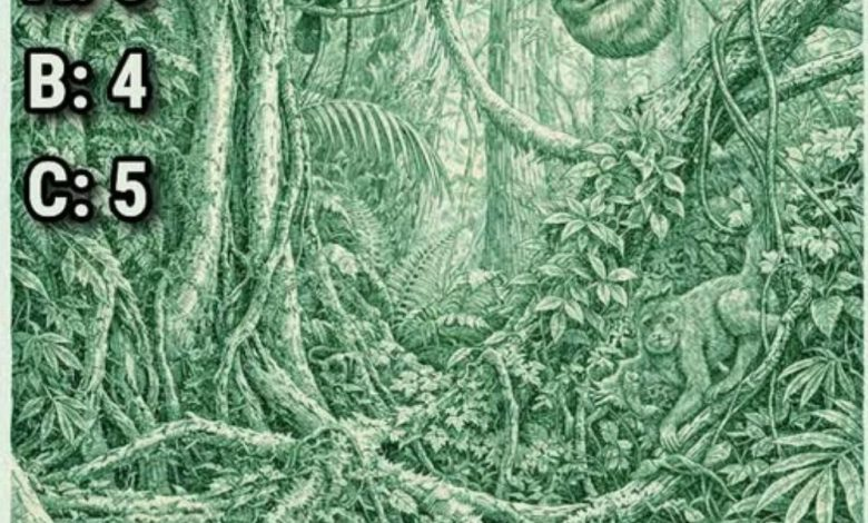 What This Jungle Illusion Really Reveals About Narcissism At first glance, this jungle illustration looks like a typical dense forest—twisting roots, hanging vines, and layers of leafy canopy. But hidden among the foliage are several camouflaged animals, waiting to be spotted. The bold headline claims: “The Number of Animals You See Determines If You’re a Narcissist.” Options: A: 3 B: 4 C: 5 It’s an intriguing statement—but does it actually mean anything? Let’s break it down. Spotting the Hidden Animals If you look closely, you might find: A toucan perched on a branch A sloth hanging from a limb A…