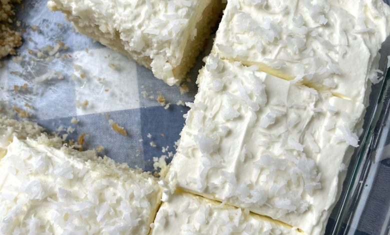 When you’re craving something sweet but light, this Coconut Cloud Cake is the perfect choice. Soft, fluffy, and full of coconut flavor, it strikes a nice balance between creamy and refreshing. A tender white cake is soaked in rich coconut milk, then topped with a smooth, airy frosting that makes every bite feel light and satisfying. The best part? It’s made with simple ingredients and comes together with easy steps—no complicated techniques needed. Coconut Cloud Cake 🍰 Ingredients Cake Base: IngredientQuantityCake flour2¾ cupsBaking powder1 tablespoonSalt1 teaspoonGranulated sugar1½ cupsButter (softened)¾ cupEgg whites4Whole egg1Heavy whipping cream1 cupVanilla extract1½ teaspoonsCoconut extract2 teaspoonsFull-fat coconut…