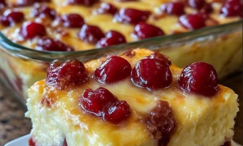 These 3-Ingredient Cherry Cheesecake Bars are the ultimate shortcut dessert—no eggs, no flour, just pure creamy goodness. Sweetened condensed milk works its magic to create a rich, silky cheesecake texture, while the cherry topping bakes right in for a gorgeous marbled finish. And yes—the parchment “sling” trick makes slicing them into perfect squares super easy. Cherry Cheesecake Bars Ingredients:• 1 (21 oz) can cherry pie filling• 2 (8 oz) packages cream cheese, softened• 1 (14 oz) can sweetened condensed milk Directions: Preheat oven to 350°F. Line a 9×13-inch pan with parchment paper, leaving overhang on the sides for easy lifting.Tip:…
