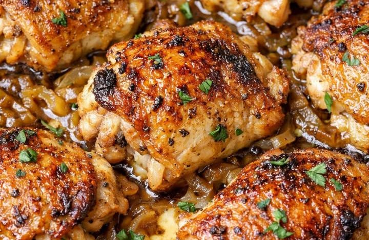 This Oven-Baked 3-Ingredient Onion Soup Mix Chicken turns simple pantry staples into a rich, savory, bistro-style meal. Mixing the onion soup blend with olive oil creates a paste that sticks perfectly to the chicken, locking in flavor. A hot cast iron skillet gives the bottoms a quick sear, while the oven crisps the skin to golden perfection. Onion Soup Mix Chicken Ingredients:• 2½–3 lbs chicken thighs (bone-in, skin-on)• 1 (1 oz) packet dry onion soup mix• 2–3 tablespoons olive oil (or melted butter) Directions: Preheat oven to 400°F. Place a cast iron skillet in the oven while it heats.Tip: Starting…