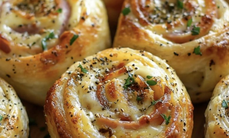 These bite-sized rolls aren’t exactly sandwiches, but they’re definitely more than just a snack. Rolled ham and cheese spirals are simple to prepare, super flexible, and always a crowd favorite—perfect for parties, game day, or even a quick, easy meal. Flaky dough wraps around savory ham and melty Swiss cheese, then gets topped with a rich, tangy butter glaze that takes them to the next level. Smoky ham, zesty mustard, and gooey cheese create a combo that never disappoints. Even picky eaters won’t resist going back for more—these are guaranteed to be a hit every time. 🥐 Ham & Cheese…